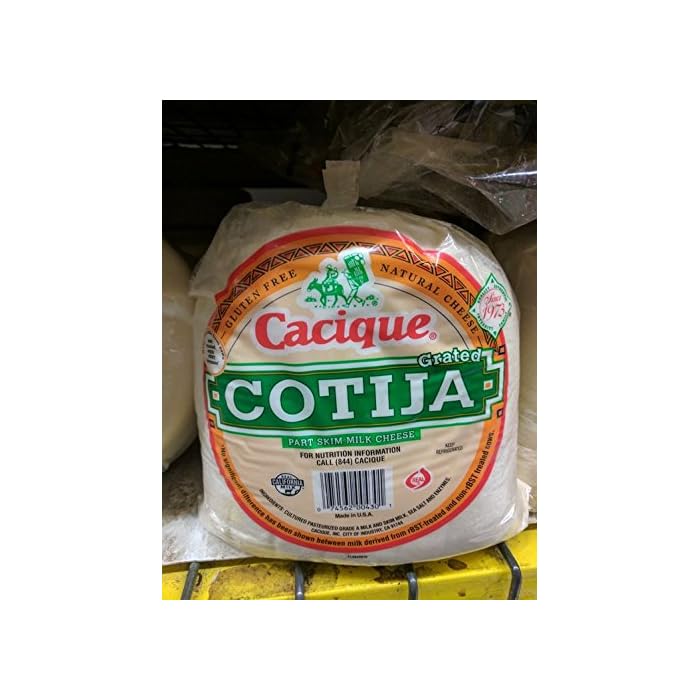 Cotija cheese is a Mexican dry grating cheese made with cows milk and is similar to Parmesan. The texture is crumbly and dry. Costco They have different brands of cotija cheese to choose from.